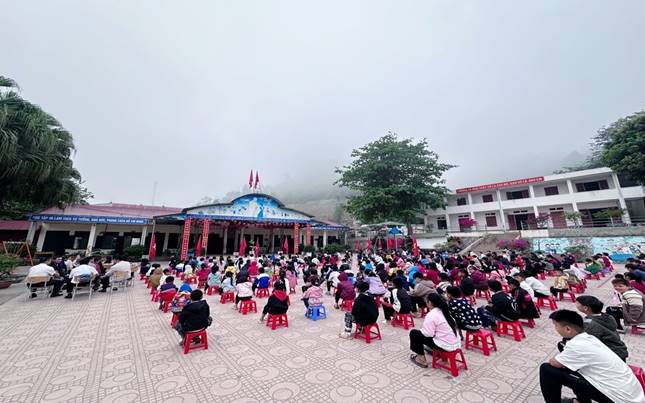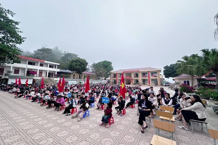 ( Toàn thể CBGV cùng các em học sinh tham gia lắng nghe tuyên truyền)