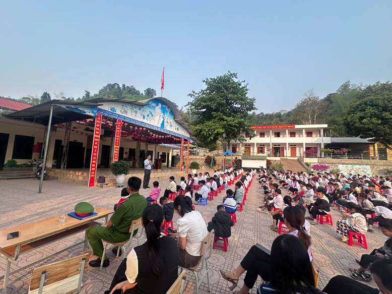 thmuongpon.edu.vn Nhằm nâng cao nhận thức và ý thức chấp hành pháp luật về an toàn giao thông cho học sinh, sáng ngày 10/04/2026, Trường PTDTBT TH Mường Pồn đã tổ chức buổi tuyên truyền “An toàn giao thông cho nụ cười trẻ thơ” với sự tham gia của các cán bộ Công an xã cùng toàn thể cán bộ, giáo viên và học sinh trong nhà trường.